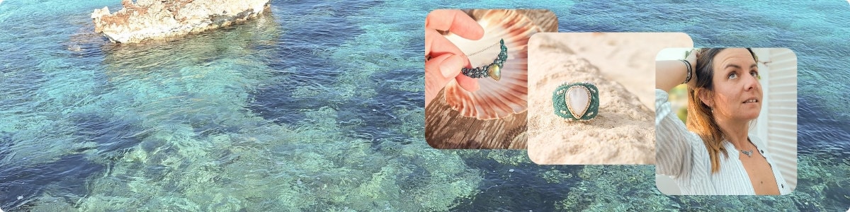 Macrame Jewelry Set with Apatite Stones and Gold Plated Sterling Silver Marea Collection. Handmade Necklace, Earrings and Bracelet