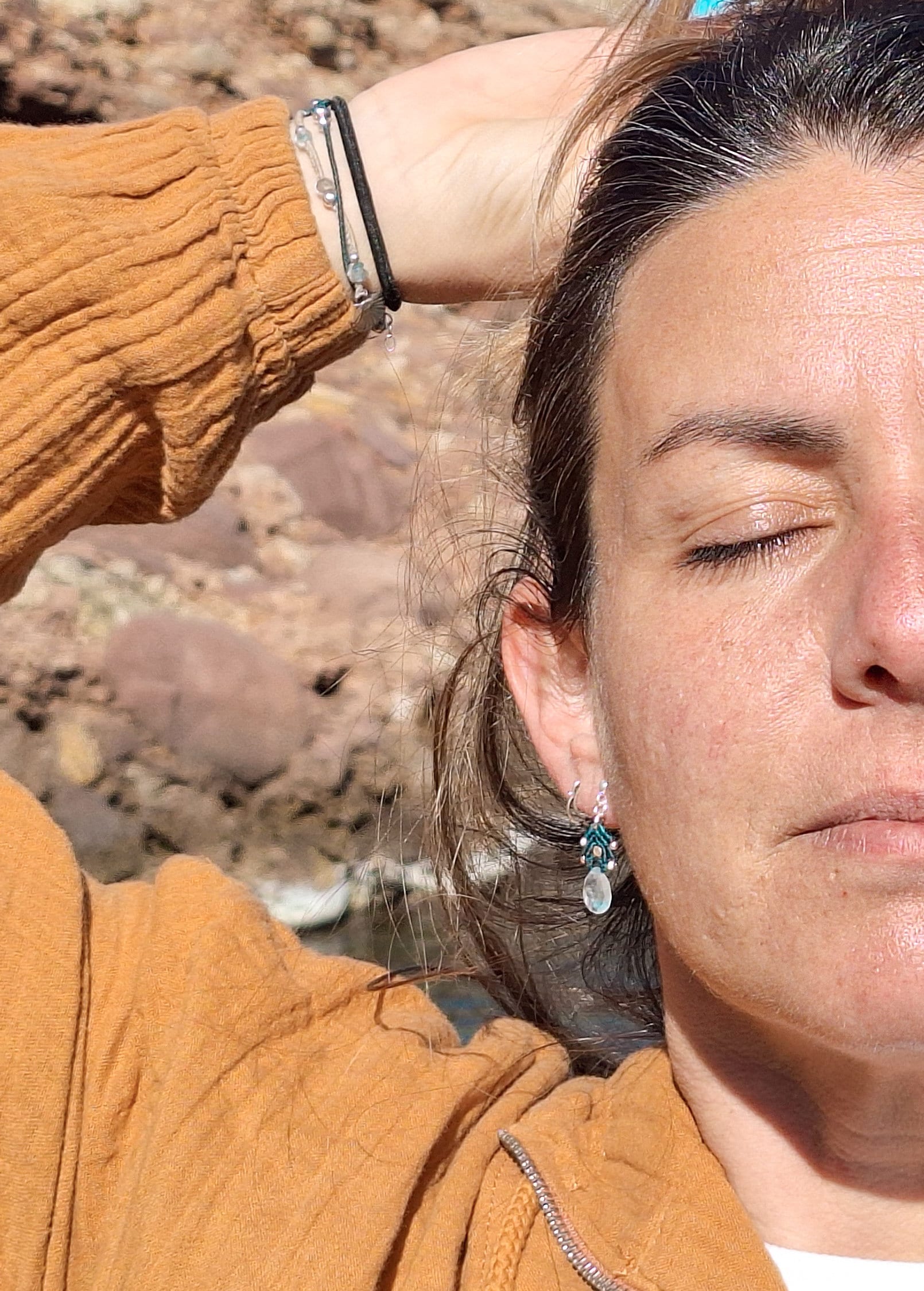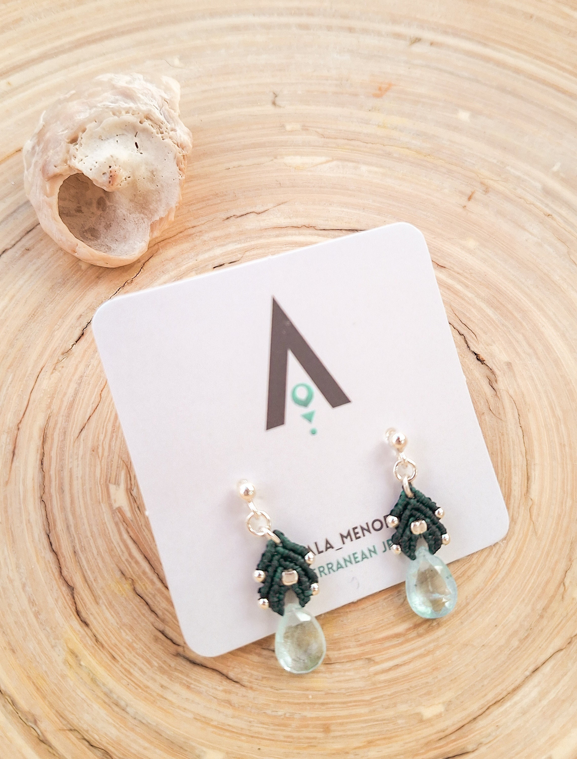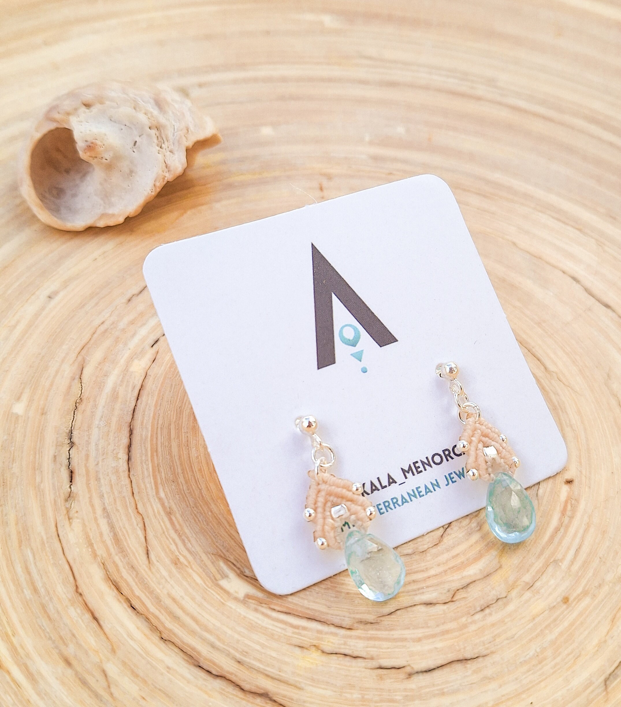 Discover the macrame, silver and Amazonite stone earrings with a sophisticated and unique design. This jewel is an artistic expression that fuses the sophisticated with the bohemian, capturing the essence of nature and the elegance of contemporary fashion. It is a very versatile accessory with which to stand out in your everyday life or at a special event.