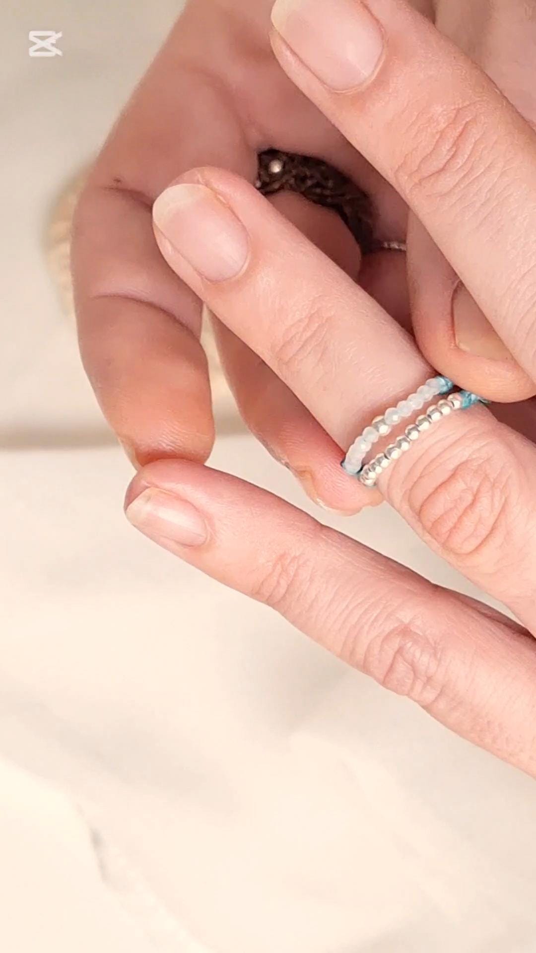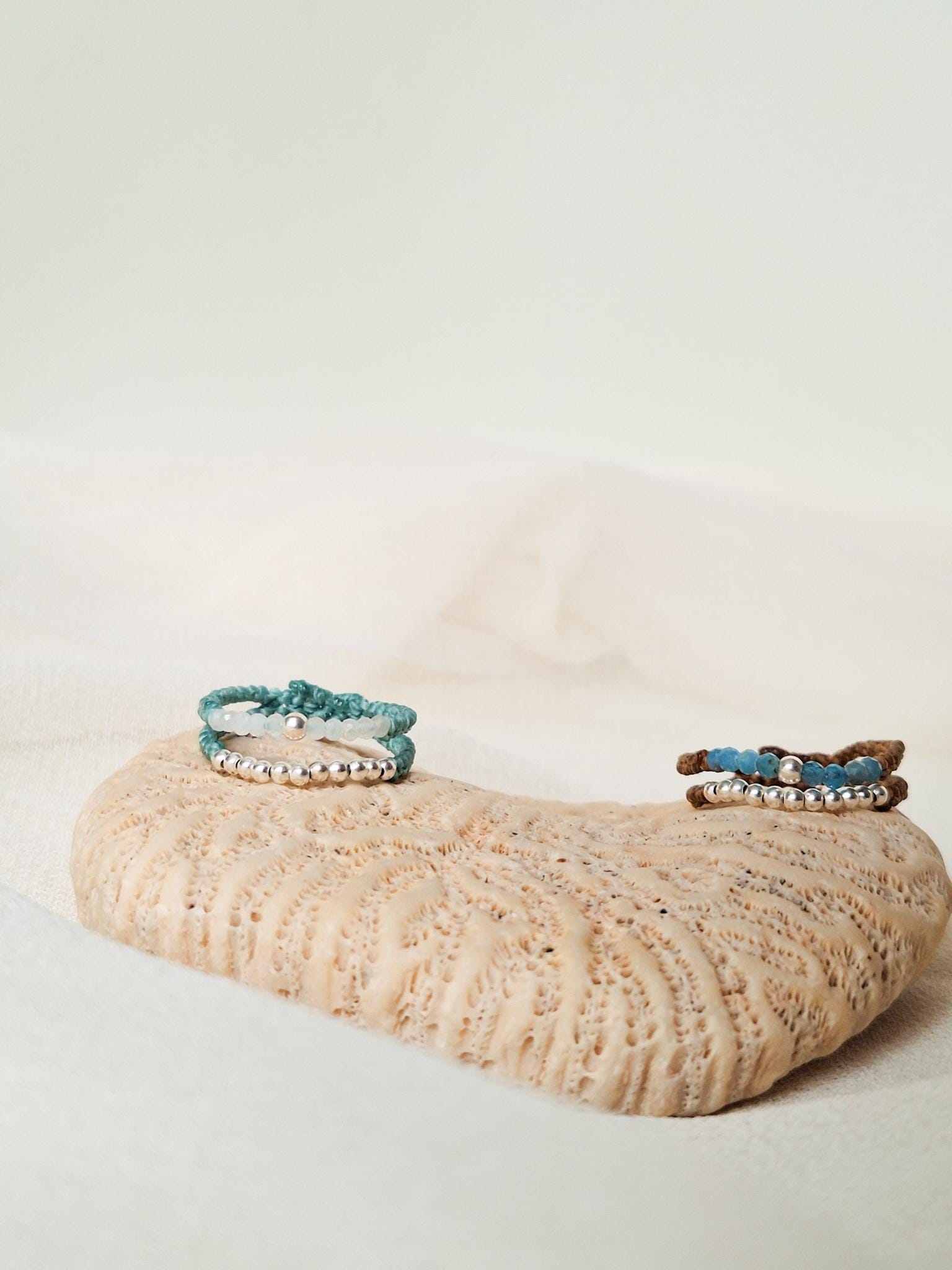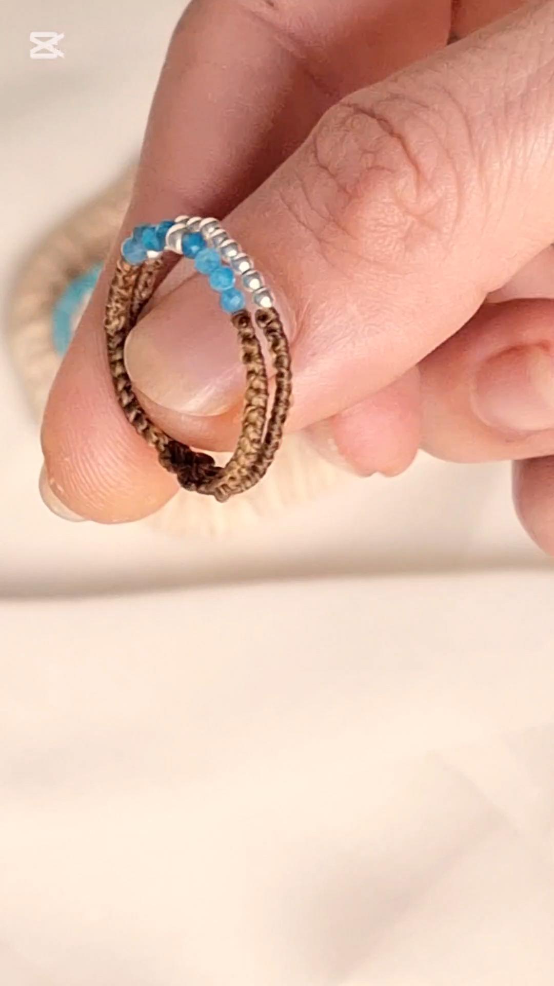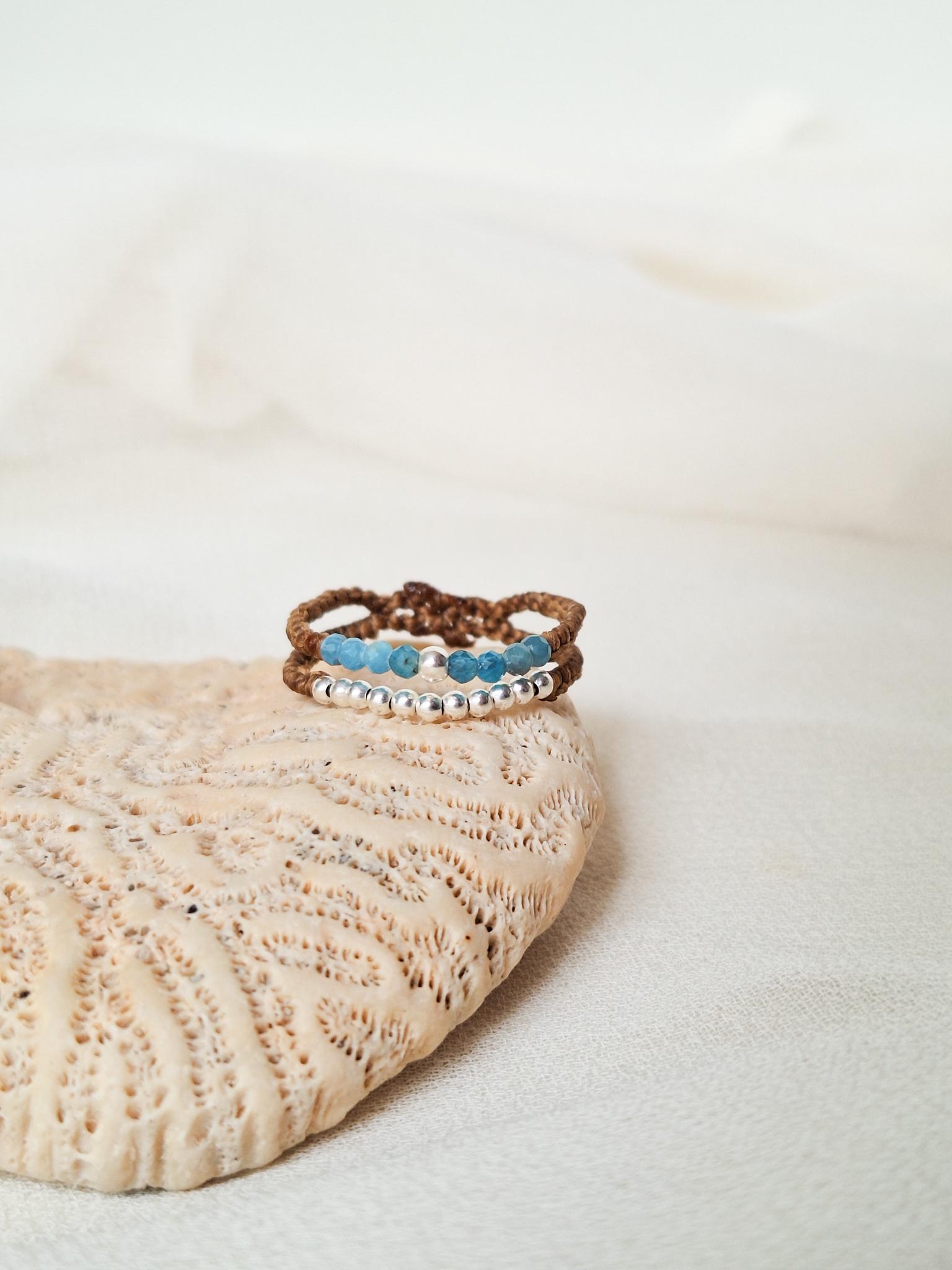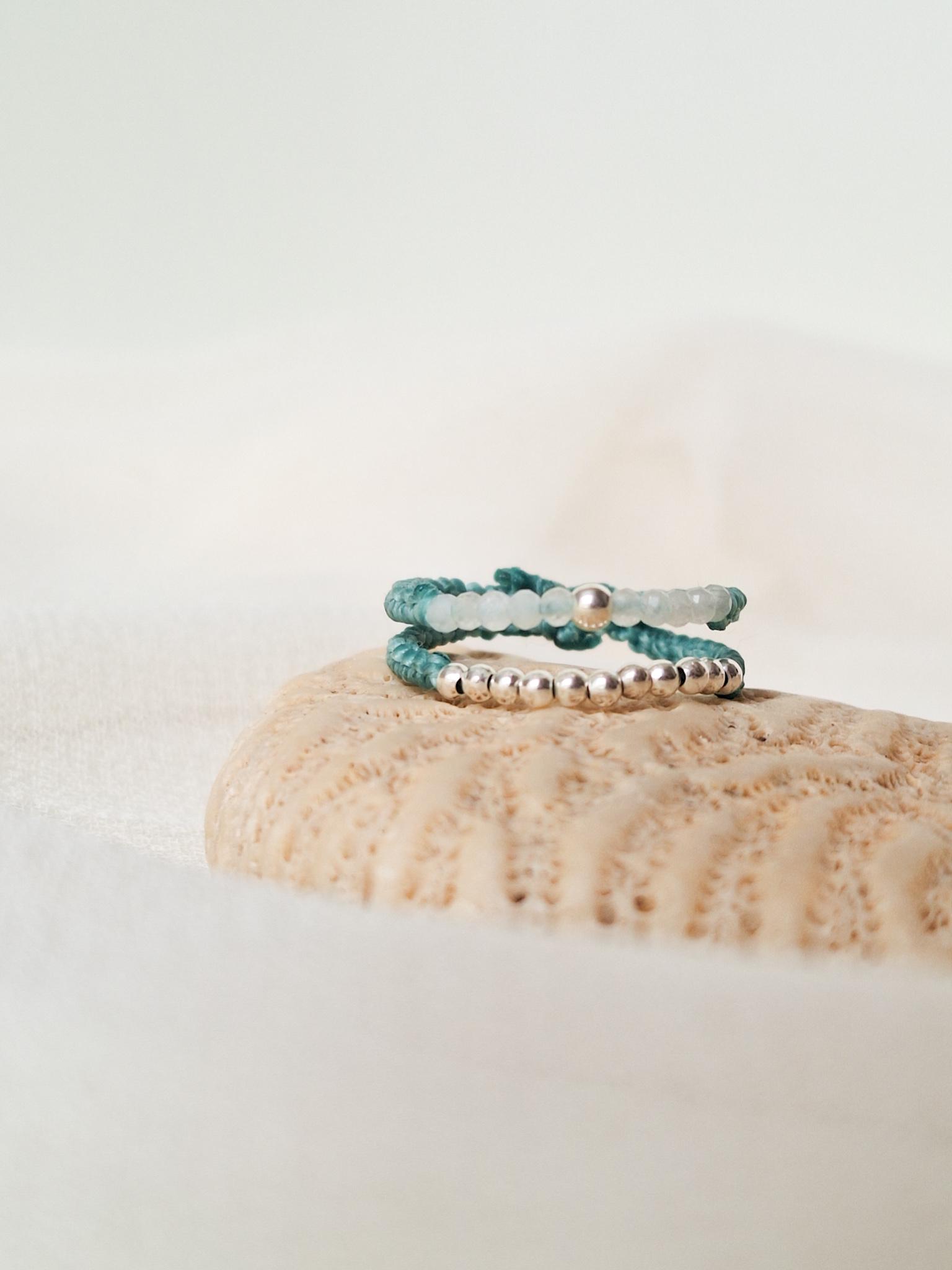 Handmade double ring with a delicate macramé design. This Sedna Collection jewelry combines simple and elegant lines with small faceted Moonstone or Apatite beads, combined with sterling silver beads. Choose the combination that best suits your style to add a special touch to your hands.