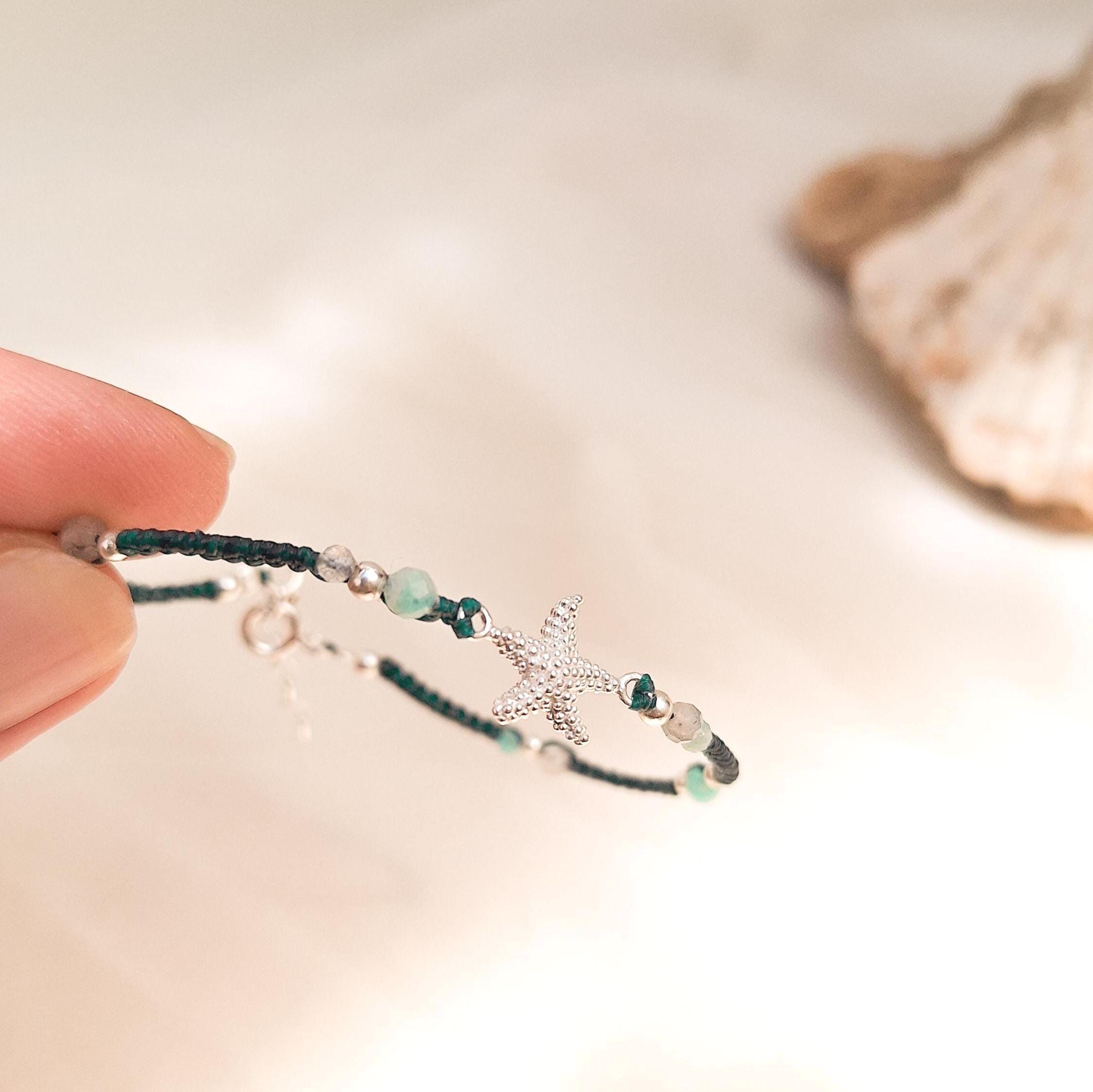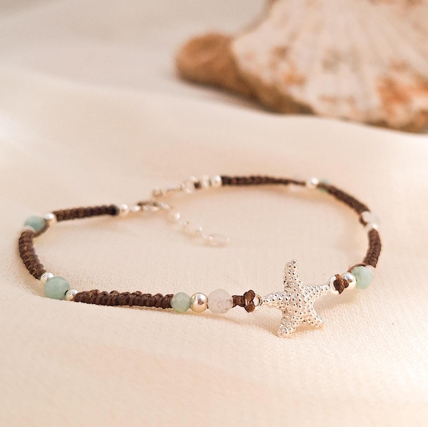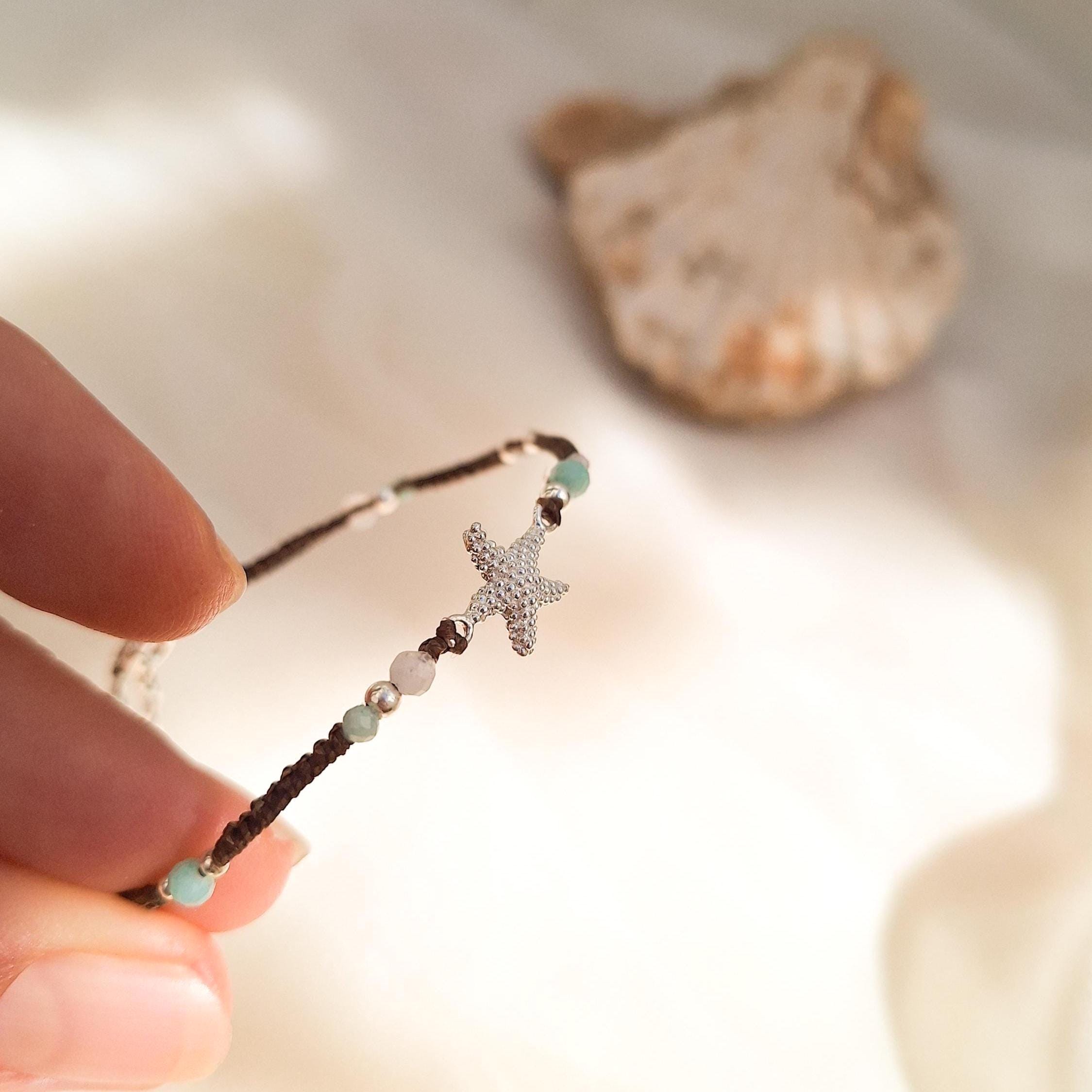 Starfish bracelet handmade with macramé technique, sterling silver and natural stones.